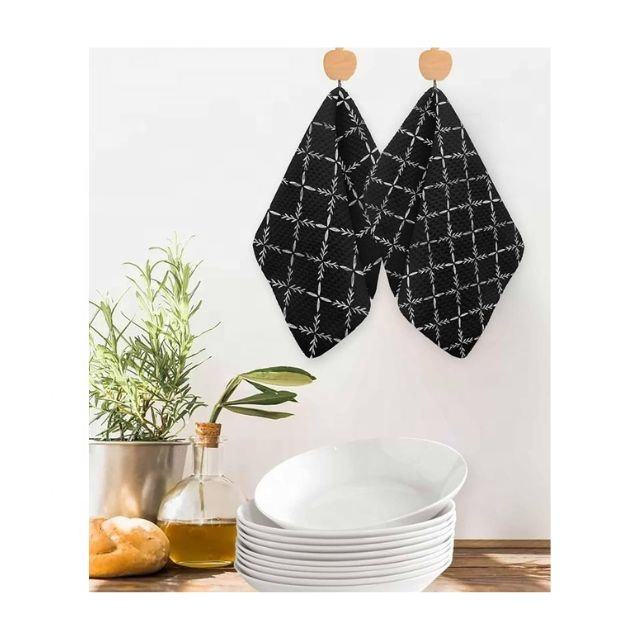 Golf Embroidered Stripes Waffle Pattern Woven Discret Super Absorbent Terry Large Square 50x60cm Quality 100% Cotton Dish Towels