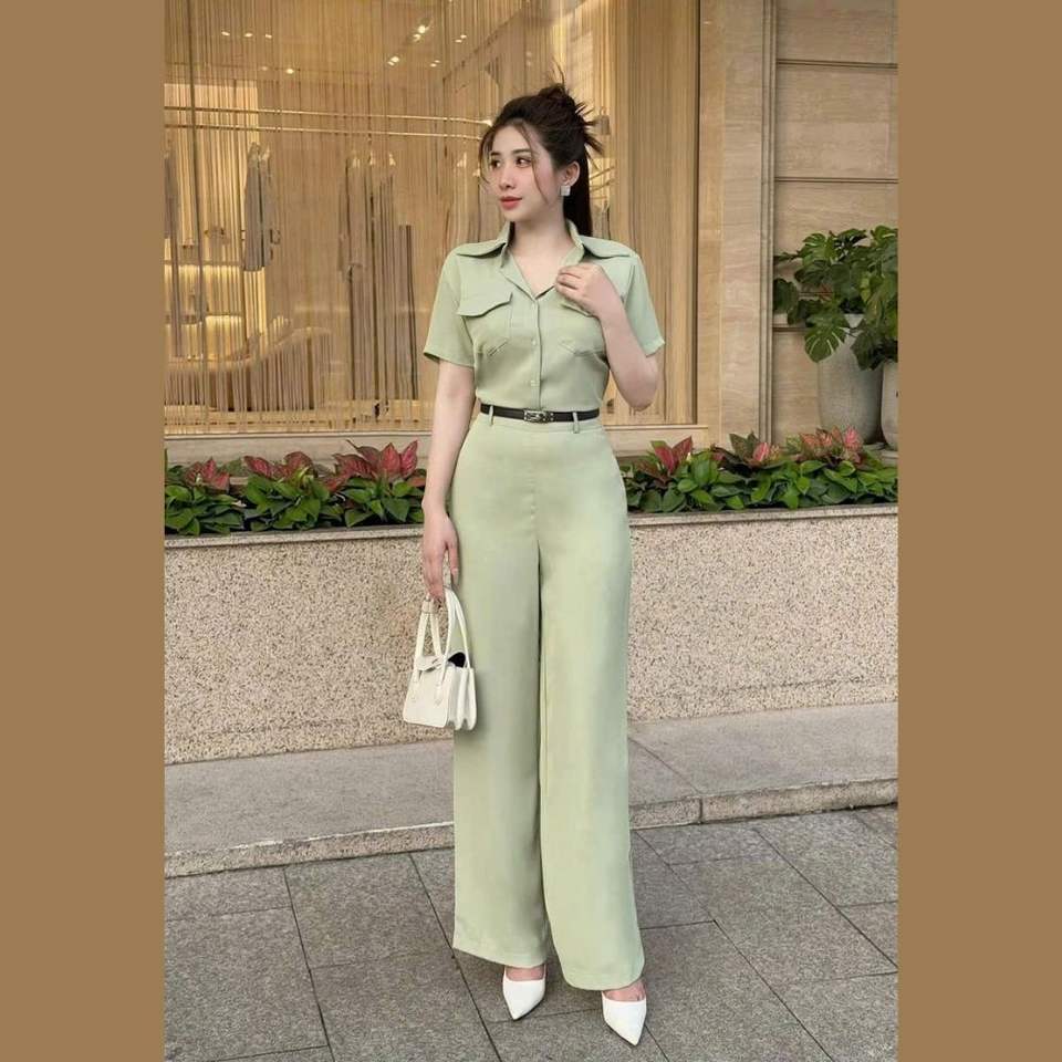 Good Choice Chic Women's Short-Sleeve Top with Long Pants - A Stylish Ensemble for Office and Casual Outings, Effortlessly