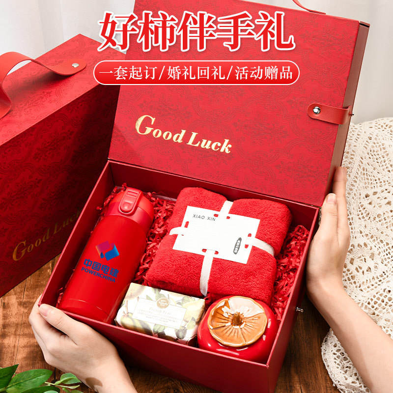 Good Luck Chinese New Year Gift Set Red Box Personalized Metal Souvenir Water Bottle Towel Soap Public Relations Business Gifts