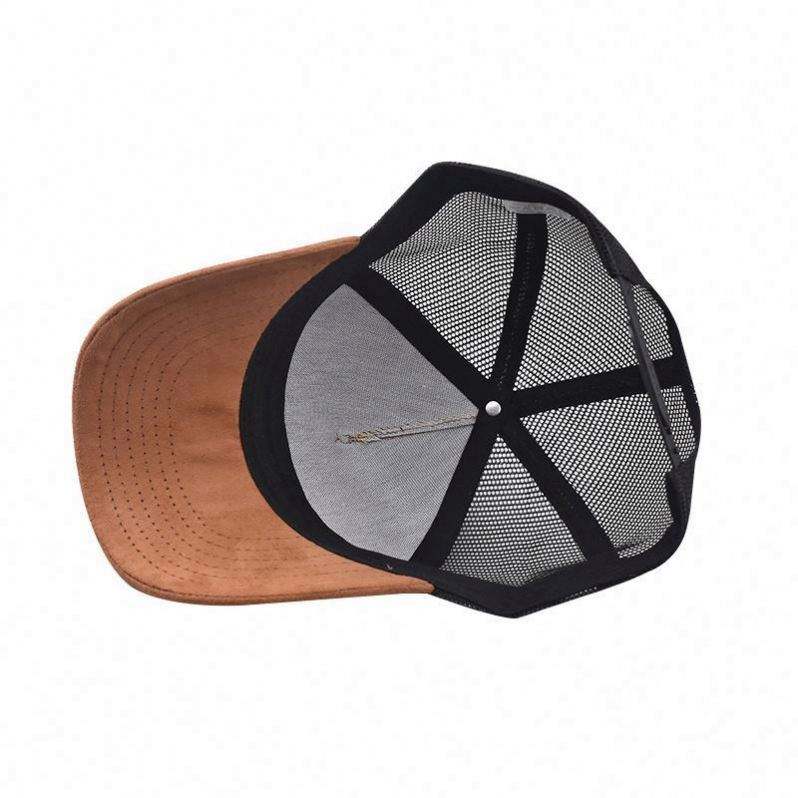 Good Material Suede 5 Panel Mesh Trucker Hats Custom Embroidery Logo Two Tone Curved Blank Suede Trucker Hats