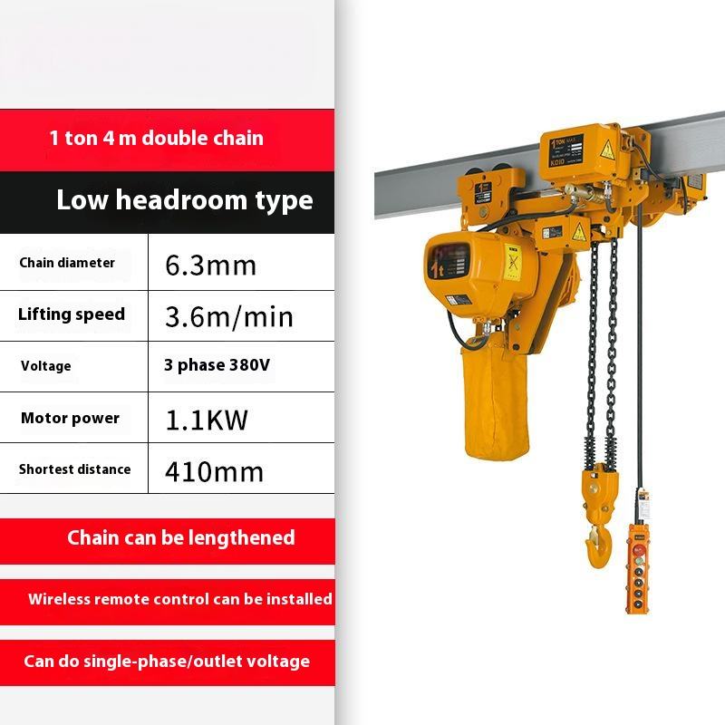 Good Price Low Headroom 380V IP54 Protection Chain Electric Hoist Lifting Equipment Industrial Remote Control 4m Lifting Height