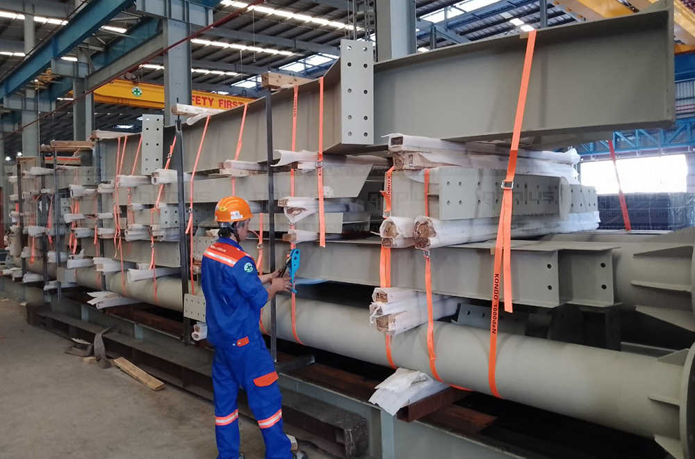 Around 22 tons of steel frame will be loaded in a 40" shipping container by skid and fixed in the container by cables. Port of loading: Cai Mep or Cat Lai