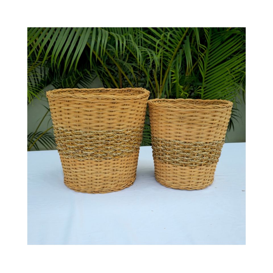 Good Price Vietnam Handicraft OEM ODM Laundry Basket Set Rattan & Colored Sedge Sustainable Multifunction Vietnam Manufacturer