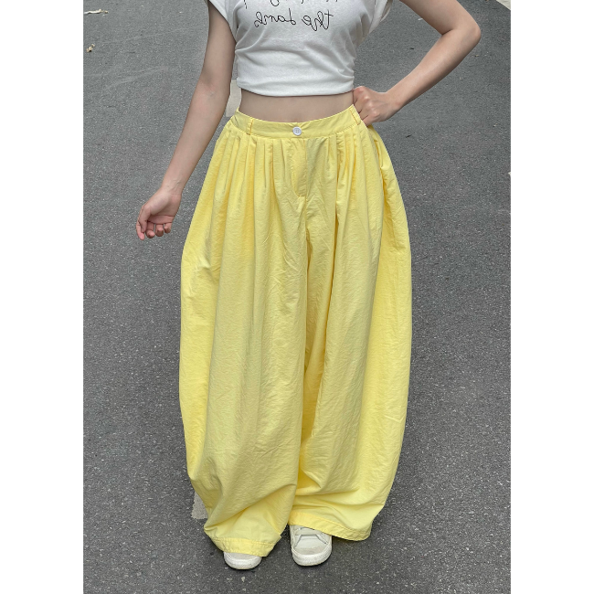Good Price Wide Leg Summer Yellow Streetwear Women's Pants Trousers Slimming Casual Breathable Flower Bow Lace Beading Elastic