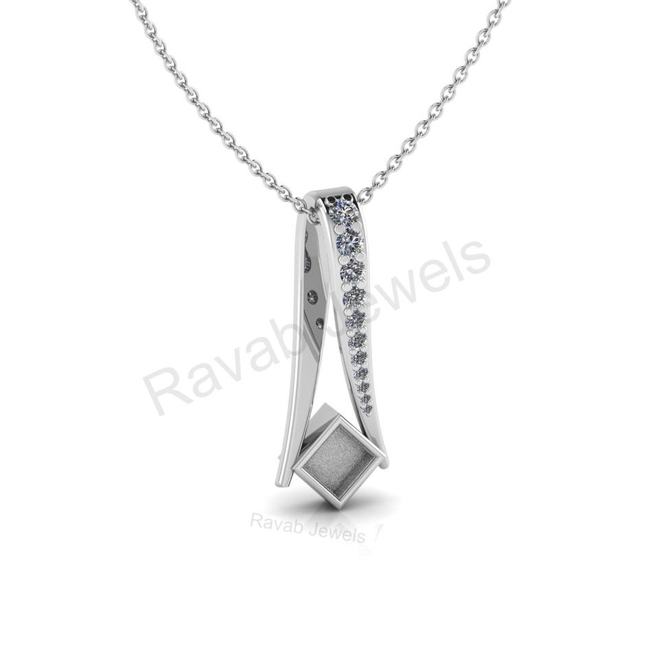 Good Quality 925 Sterling Silver 31x12mm Herringbone Custom Ashes Charm Stone Setting Elegance Zircon Necklace for Women Gift