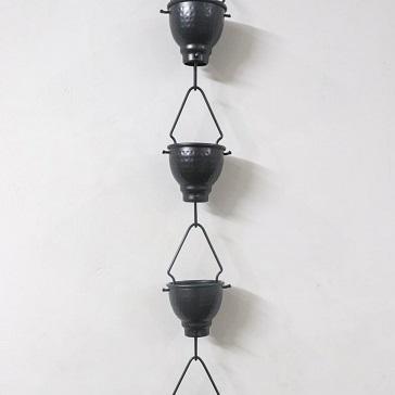 Good Quality Antique Metal Aluminum Garden Ornament Black Rain Chain in Hammered for Water Fountain