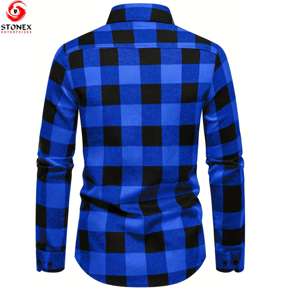 Good Quality Classic Flannel Hawaiian Shirt for Men Long Sleeve Plaid with Stand Collar Button Down Design Flannel Shirts