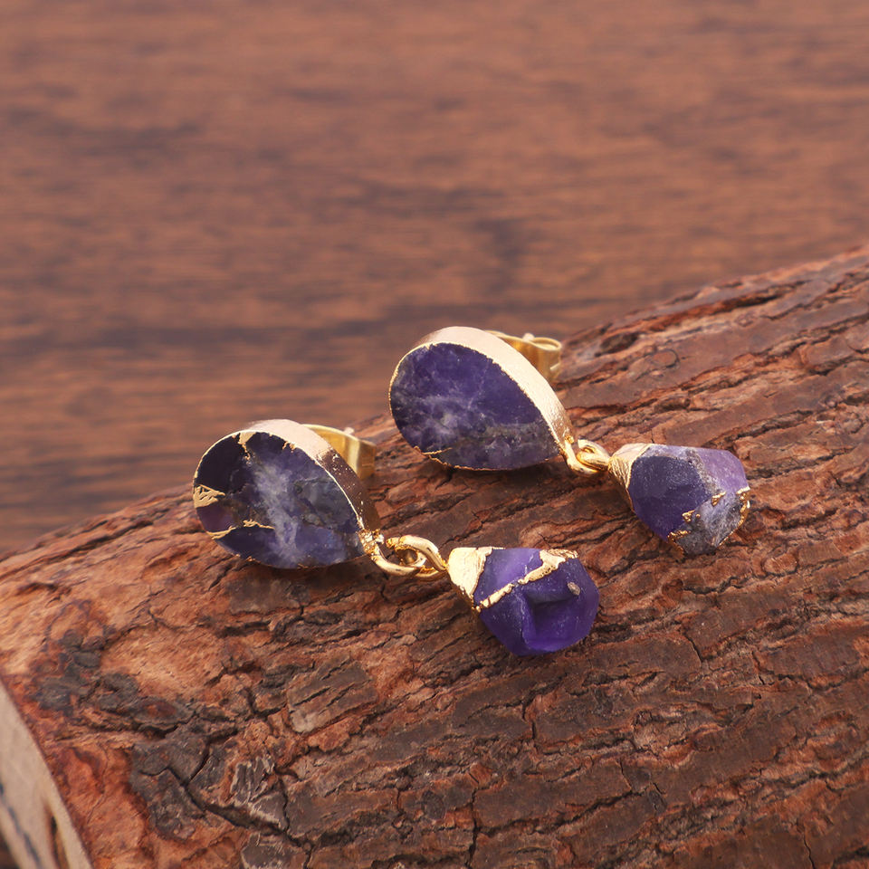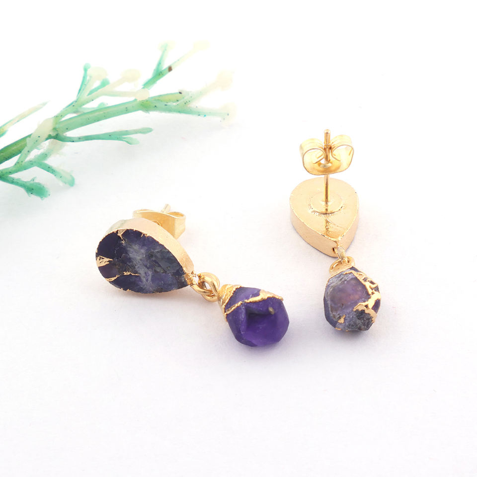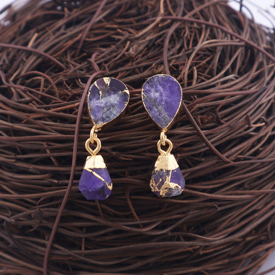 Good Quality Copper Earring Mohave Purple Amethyst Copper Turquoise Drop Stud Earring Brass Gold Plated Women Statement Earrings