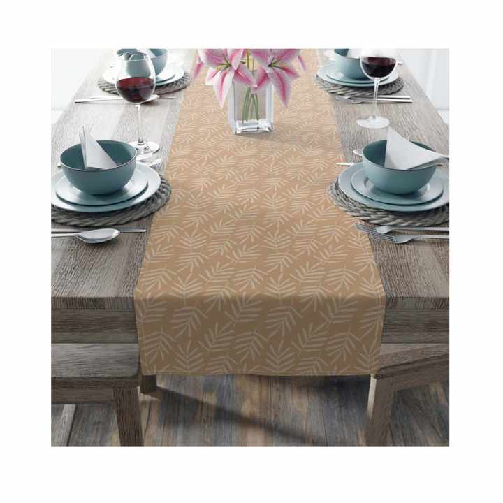 Good Quality Custom Printed Brown Color Table Runners Machine Washable Foldable Table Cloth For Hotel Restarent 100% Cotton