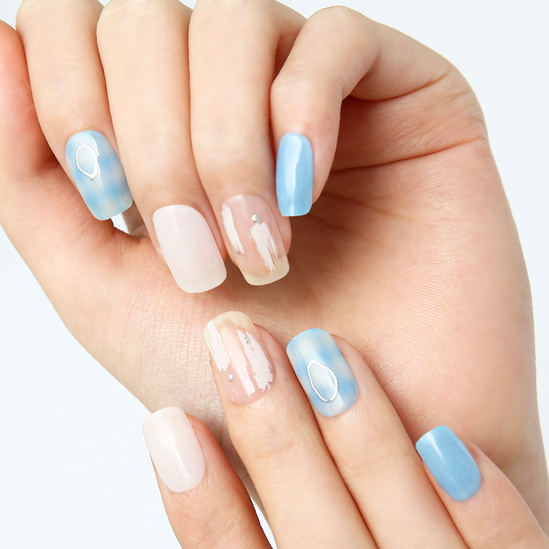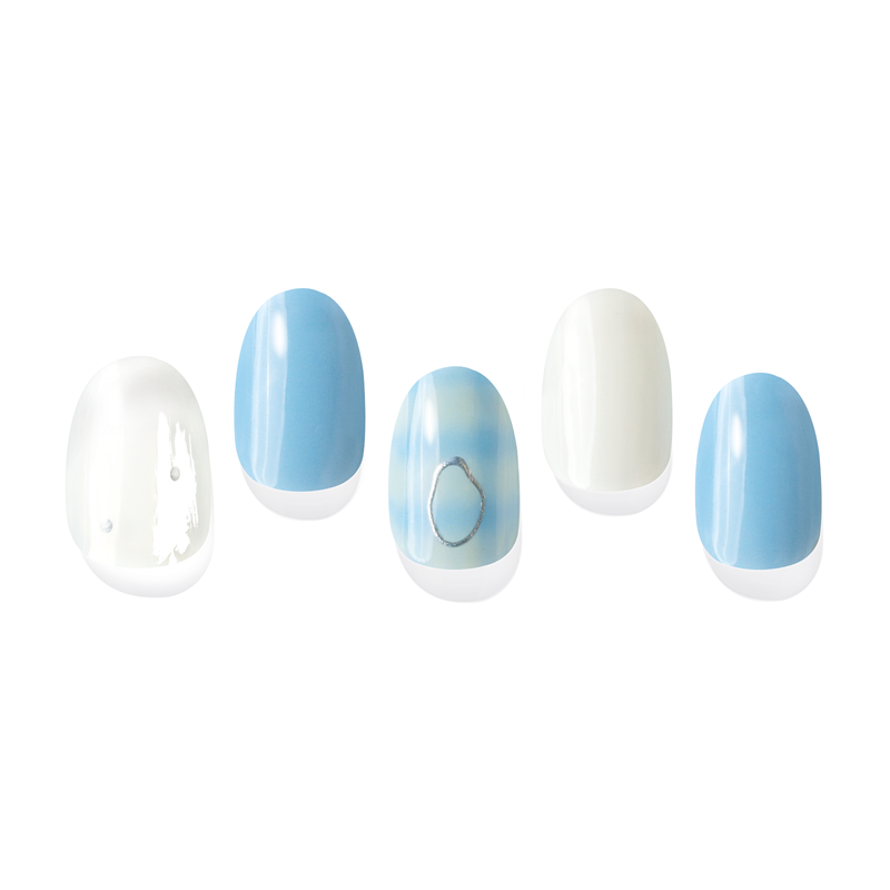 A check nail with a refreshing charm, with baby blue as the main colorFeature