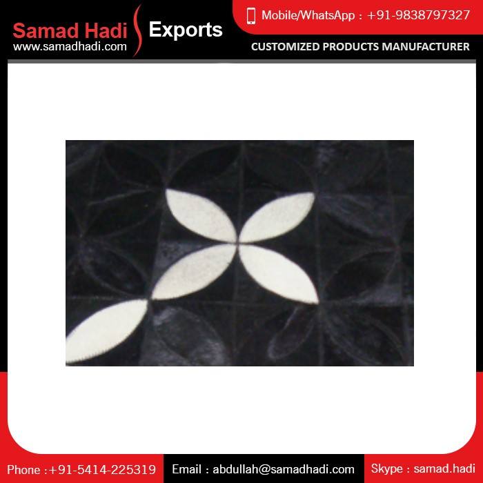 Good Quality Floral Patchwork Cowhide Leather Rugs for Bulk Quantity Embroidered Hair on Leather Area Rugs and Carpets