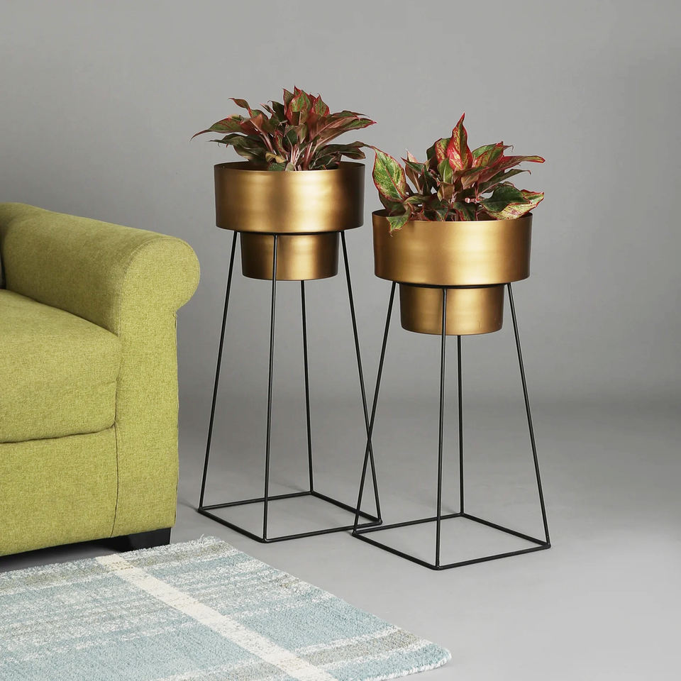 Good Quality Gold and Black Finished Flower Planter with Stand Tall Flower Decoration Planter Pot Flower Vase From India