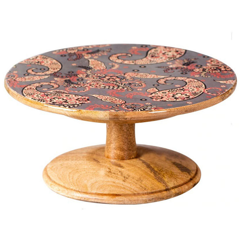 Good Quality Handicraft Wood Cake Stand with Printed Display Stand Acacia Wood Cake Stand
