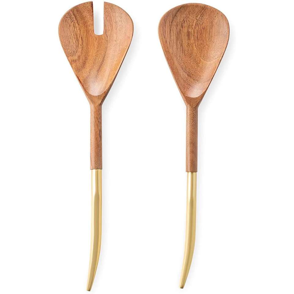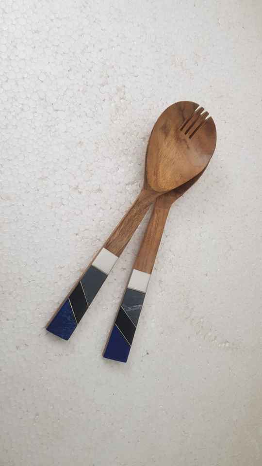 Good Quality Handmade Acacia Wood Salad Server Set with Terrazzo Handle Vintage Style Kitchen Utensils Decorative Serving Tool