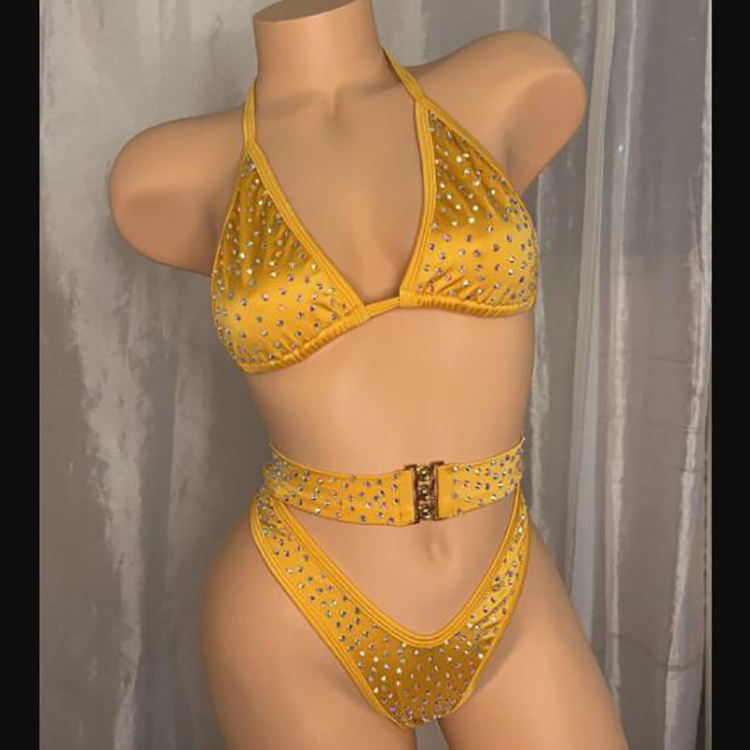 Good Quality Hot Sell Material Two Pieces Ladies Bikini Top Exotic Rhinestone Sexy Women Buckle Pants Stripper Outfits Wear