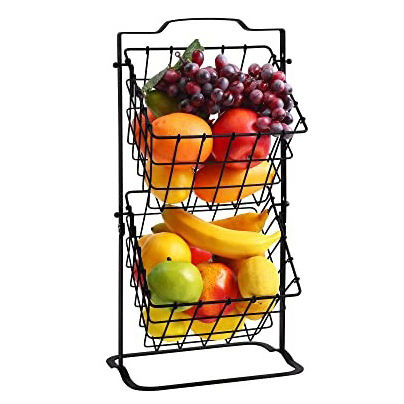 Good Quality Kitchen Storage Metal Wire Fruit Basket Vegetables Table Organizer 2 Tier Fruits Storage
