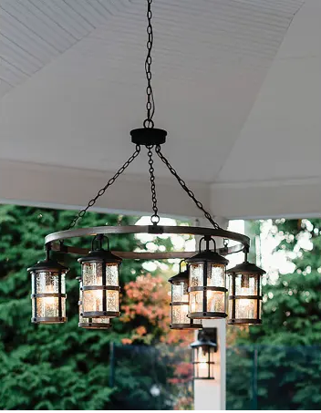 Good Quality Lighting Lakehouse 120v 6 Light 42" Wide Open Air Outdoor Chandelier with Seedy Glass Shades