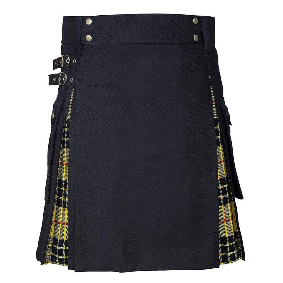 Good Quality Manufacturer OEM ODM Service Black Men's Modern Utility Kilt with Customized Fabric Custom Logo & Custom Color