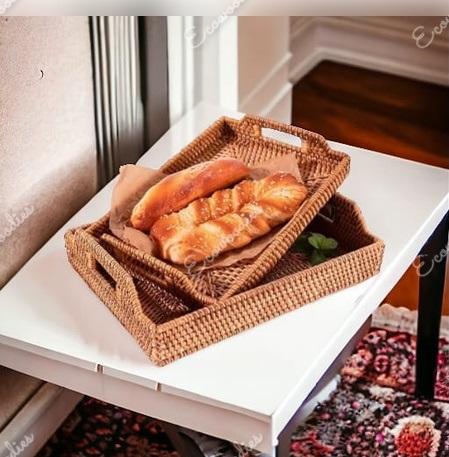 Keyword:Rectangular Serving Scalloped Basket Rattan Kitchen Tray