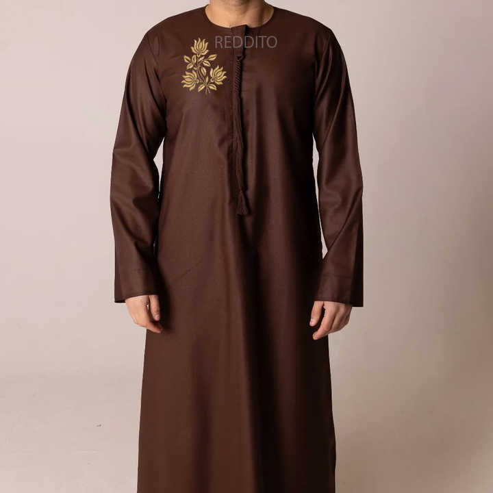 Good Quality Solid Color Thobe Material Al Haramain Thobe Saudi Men Jalab Thobe Brown Dyed Stand Collar Long Sleeve for Men