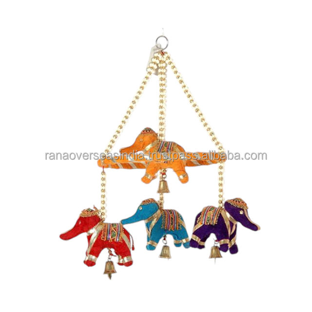 Good Quality Vintage Style Wall Hanging Cotton Elephant Wind Chime With Metal Bell Ideal for Entryway and Window
