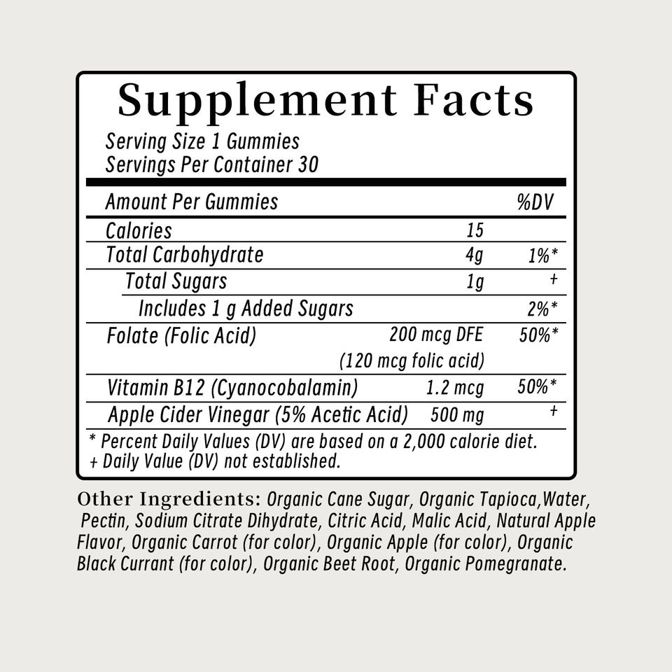 Apple Cider Vinegar, Vitamin B12, Folate, Organic Beet Root, Organic Pomegranate