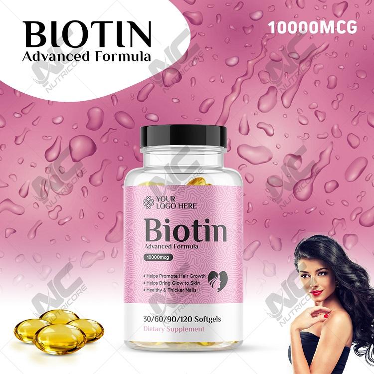 Good Quality Wholesale Dietary Supplement Biotin 10,000 Mcg Softgel for Promote Hair and Nail Growth