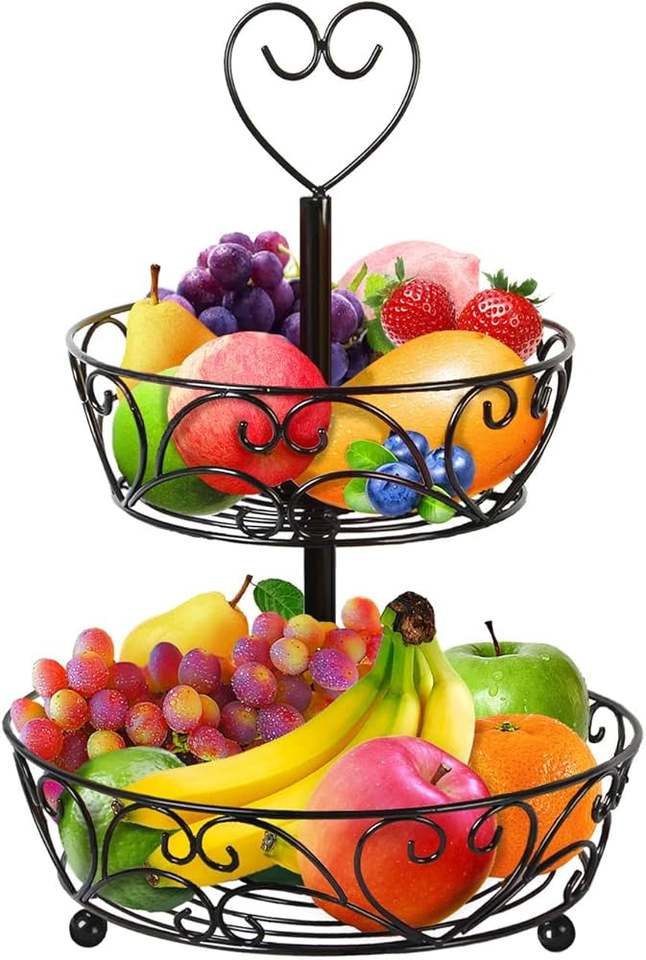 Good Seller Fruit Basket Metal Fruit Bowl with Banana Hook Keeps Home Kitchen Fruits Vegetables Metal Basket Customized Size