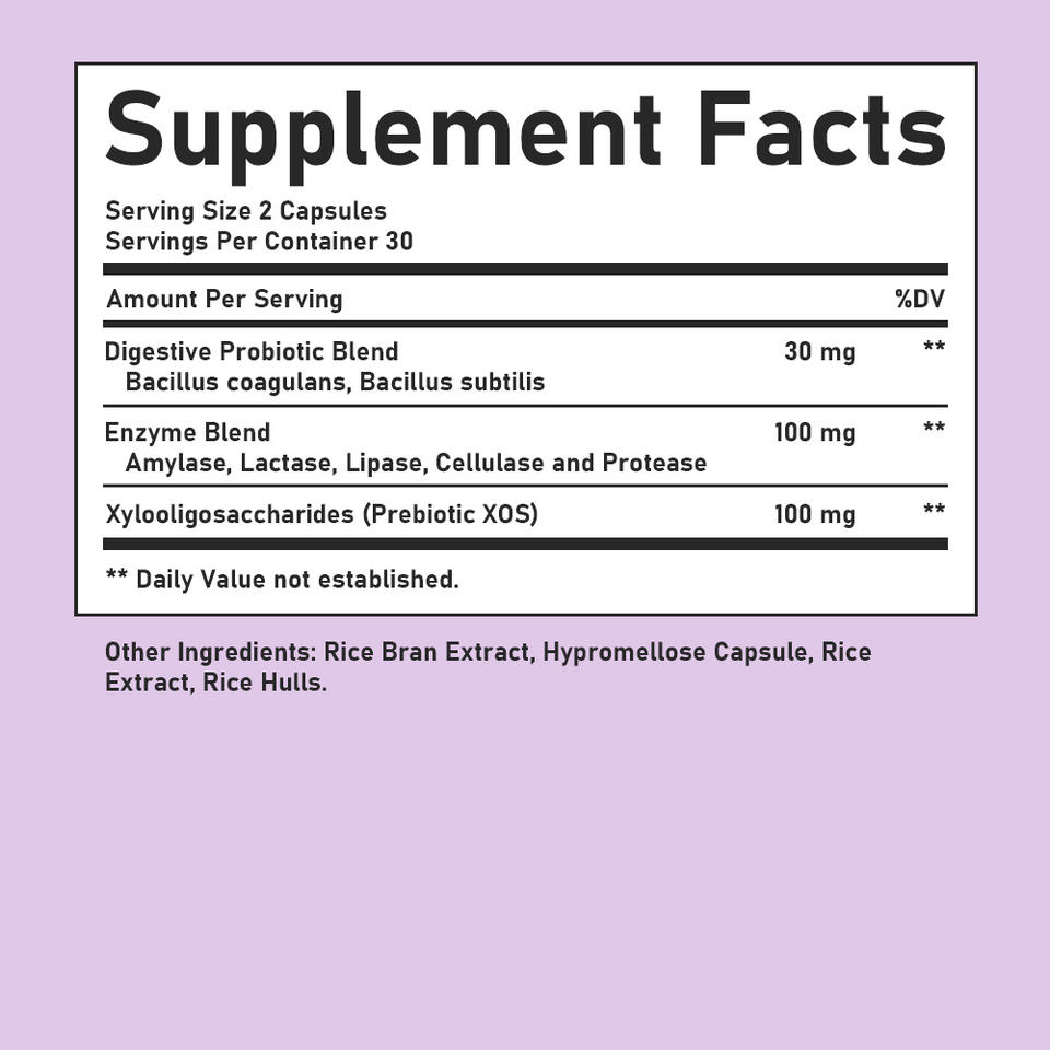 Main Ingredient:Digestive Probiotics Blend, Enzyme Blend, Xylooligosaccharides