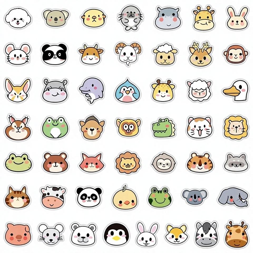 Good Selling Cute Style Matte Balloon Effect PVC Pet Stickers-Animals 2 Collection 50 Pieces