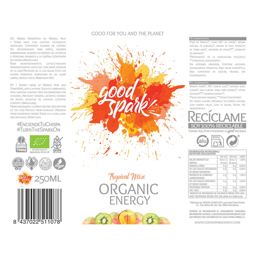Good Spark Tropical Mix 24 Sugar-Free Sports Drink with Caffeine and Soda Bulk Pack Energy Beverage Certified Halal