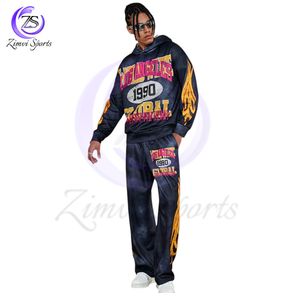Good Supplier Durable Flexible Product Outer Wear Street Rush Men Tie Dye Letter Print Hooded Sweatshirt And Sweatpants Sets