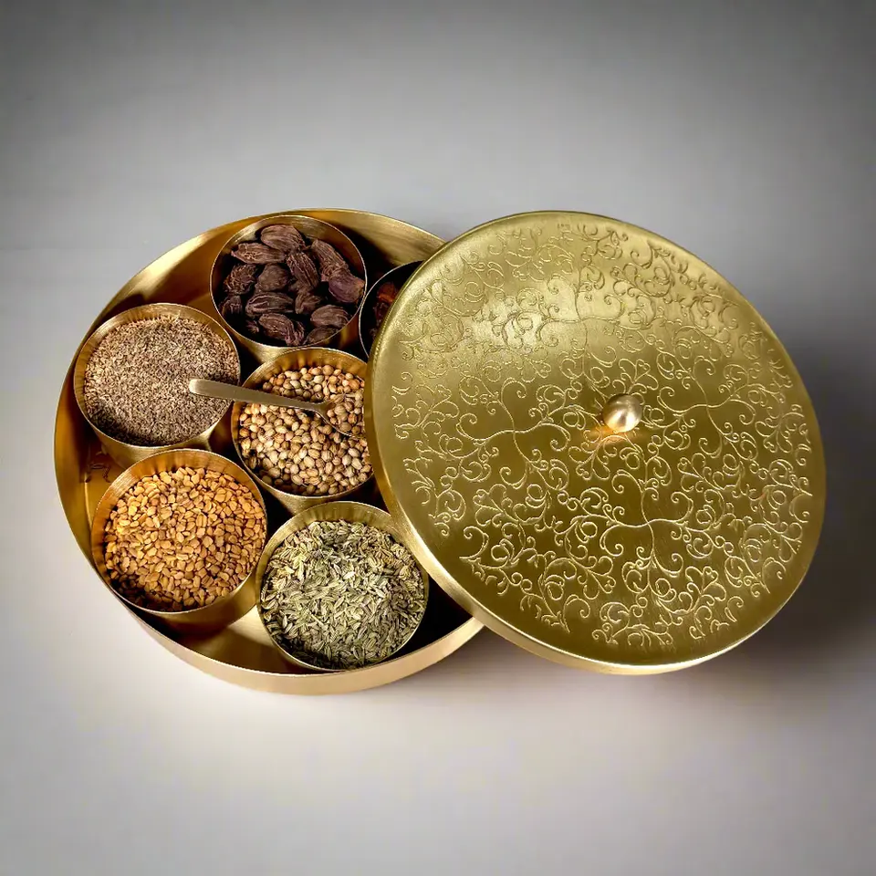 Good quality Brass Spice Box design spice box brass Metal with gold touch