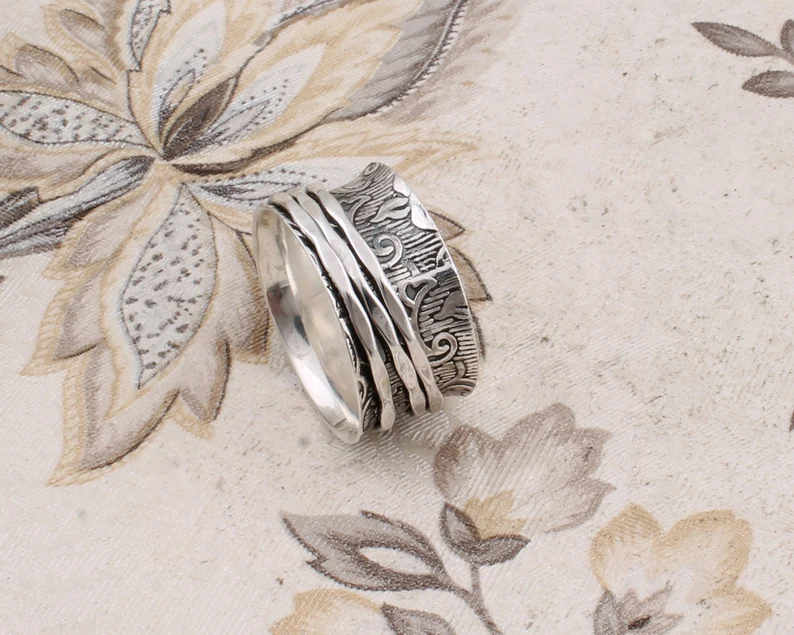 Ornate Floral Spinner Ring for Women Men Good Quality Multi-Design Thumb Finger Access Sterling Silver Gold Fill for Weddings