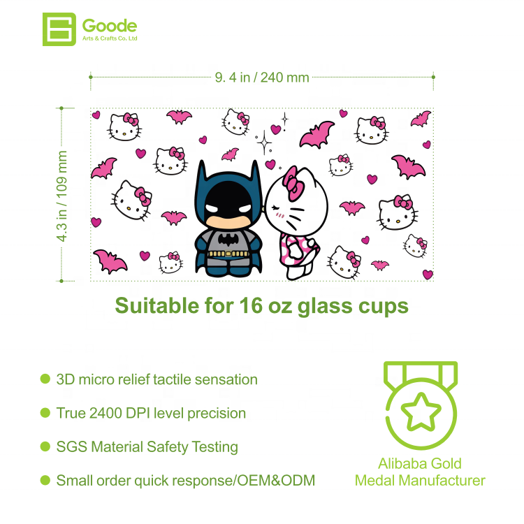 Goode 16oz Tumbler Transfer Sticker Cartoon Character Waterproof Durable Valentine's Day Decor Do Not Fade PET Cup Wraps Uv Dtf