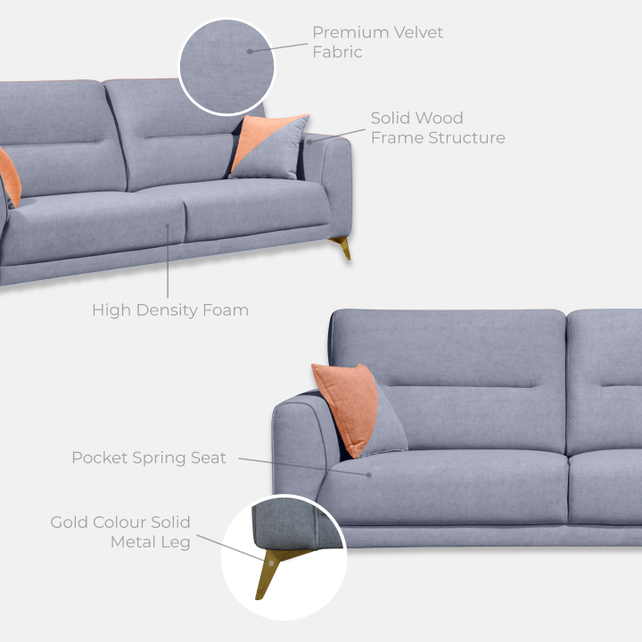 Goodnite 2 3-Seater Minimalist Eco-Friendly Fabric Sectional Sofa Set with Cushion Back High-Density Foam Durable Padded Arms