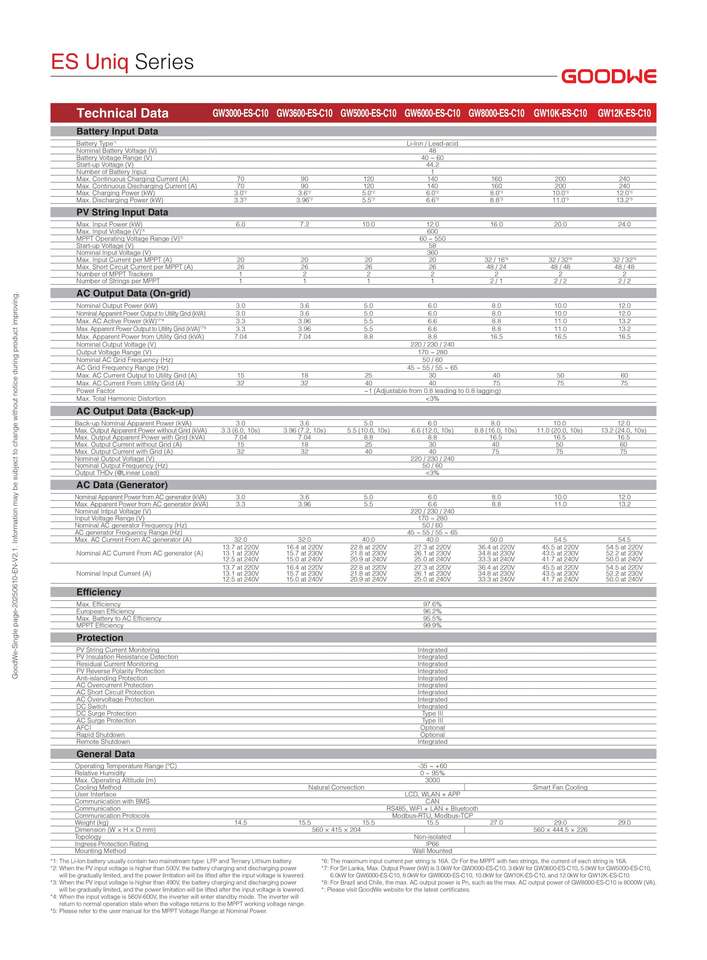Goodwe ES Uniq GW8000/10K/12K-ES-C10 8KW 10KW 12KW 1 Phase Wifi IP66 Hybrid Solar Inverter for Home Use