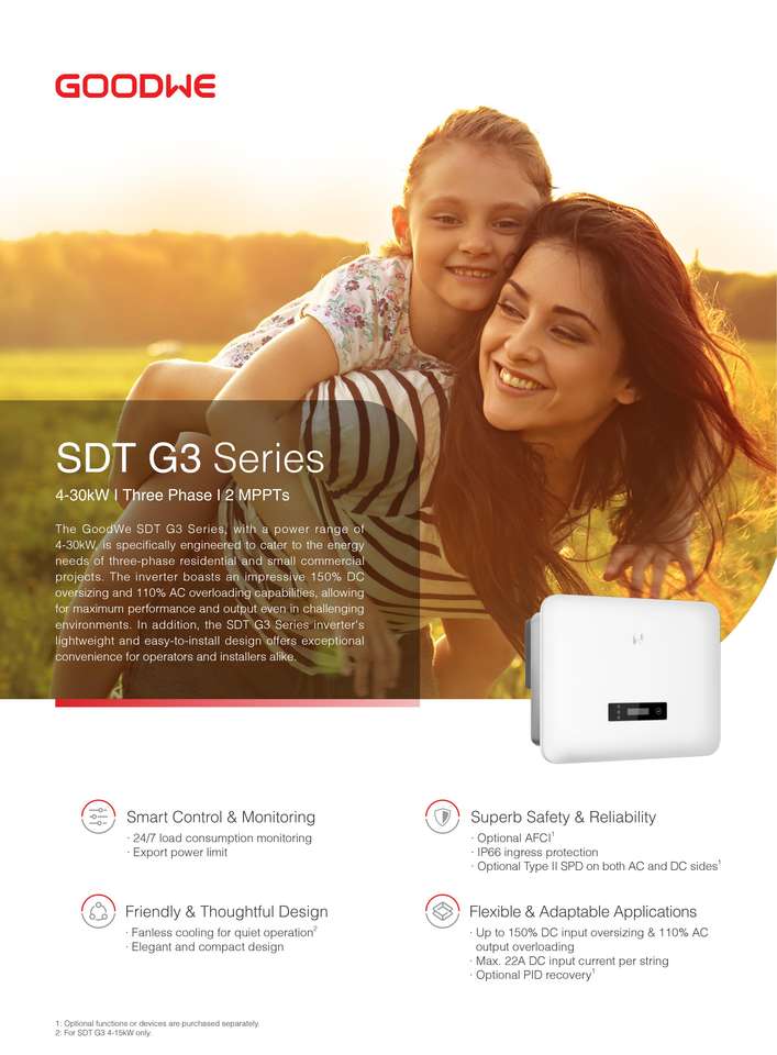 Goodwe SDT G3 25-40KW Series Residential Grid Tie Inverter Three Phase System 98.6% Efficiency IP66 Solar Power for Large Villa