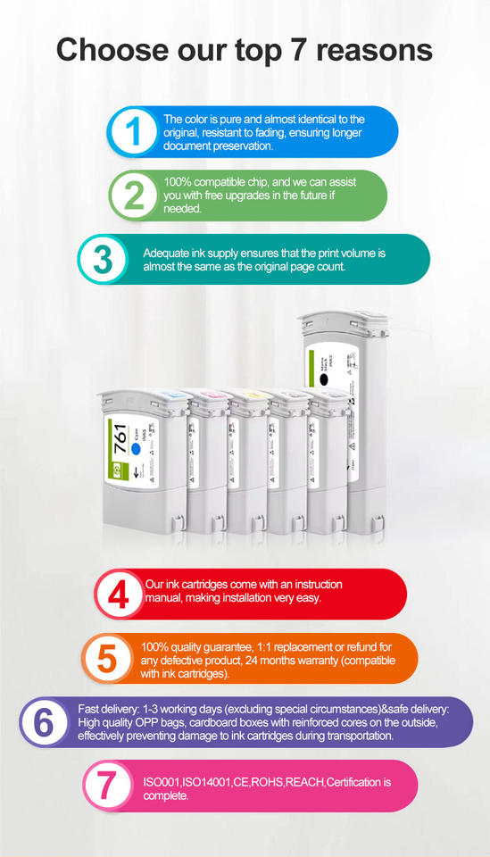 Goosam High Quality 761 Compatible Ink Cartridge Full With Pigment Dye Ink For HP DesignJet T7100 T7200 Printer