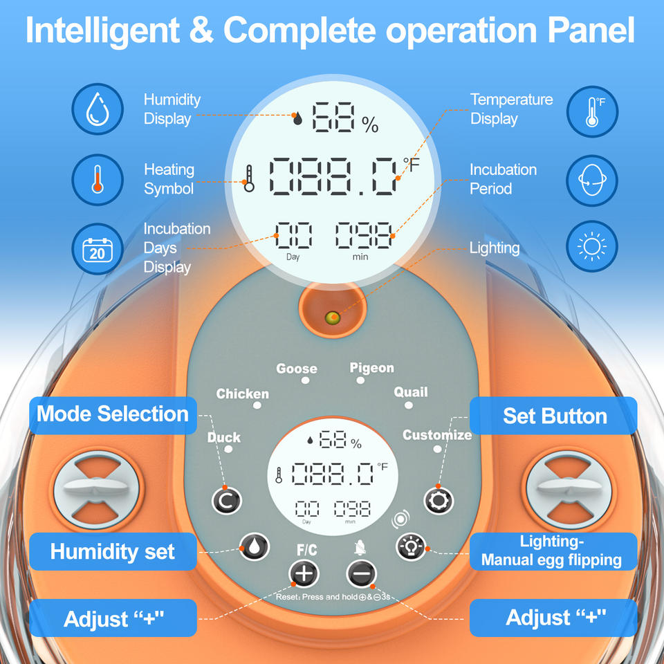 Alarm function:Temperature Abnormal Alarm/Humidity Abnormal Alarm/Egg Care Reminder