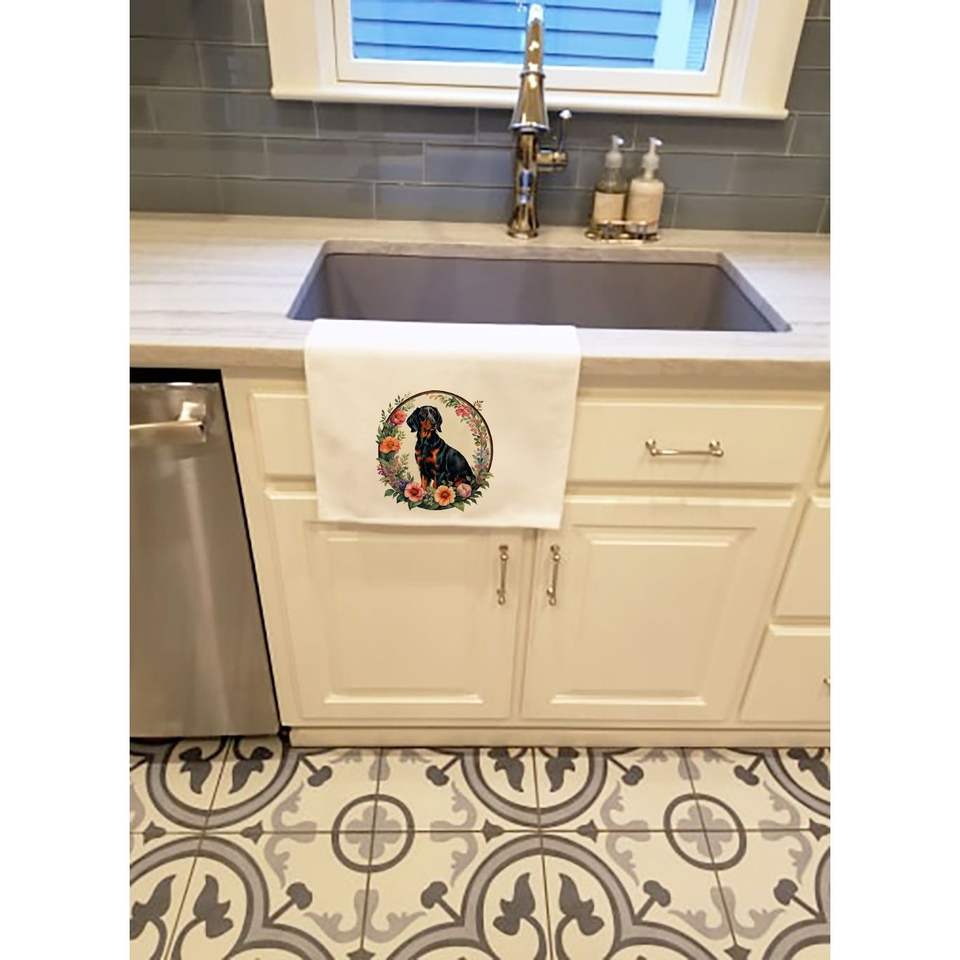 Gordon Setter Flowers 2-Pack White Dish Towels Decorative Bathroom Hand Face Hair Yoga Tea Dishcloth 19 X 28 Kitchen Towel