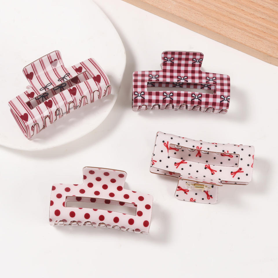 Goreisi Academy Style Heart Pattern Polka Dot Simple Clip for Women Back of Head Bun Hair Claw