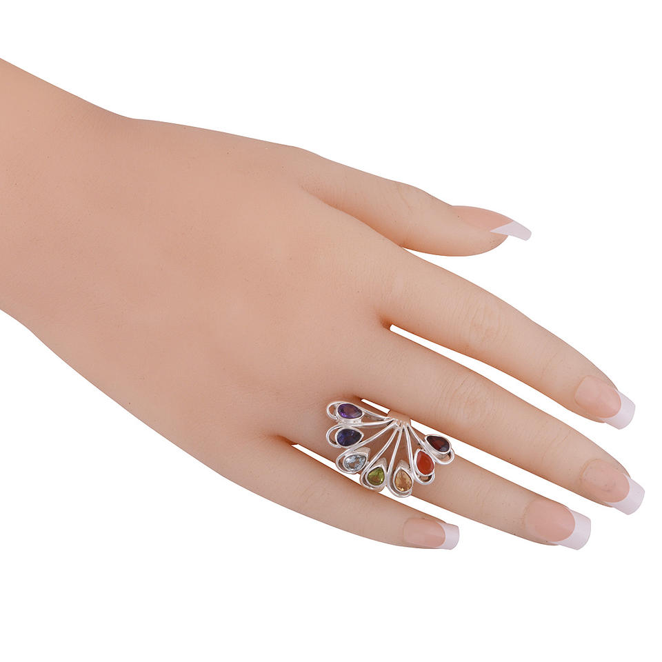 Gorgeous 925 Sterling Solid Silver Ring with Chakra Gemstone Wings Seven Colorful Gemstones in Pear Shape for Parties