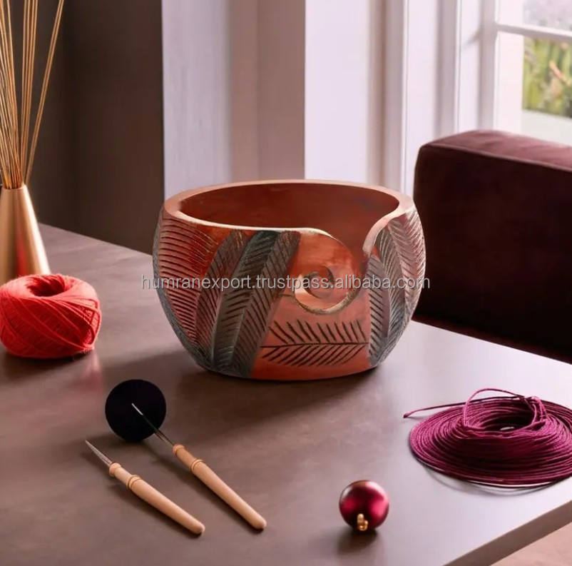 Gorgeous Craftsmanship Rosewood Wooden Yarn Bowl Unique Design with Smooth Surface for Hand Knitting Direct From India