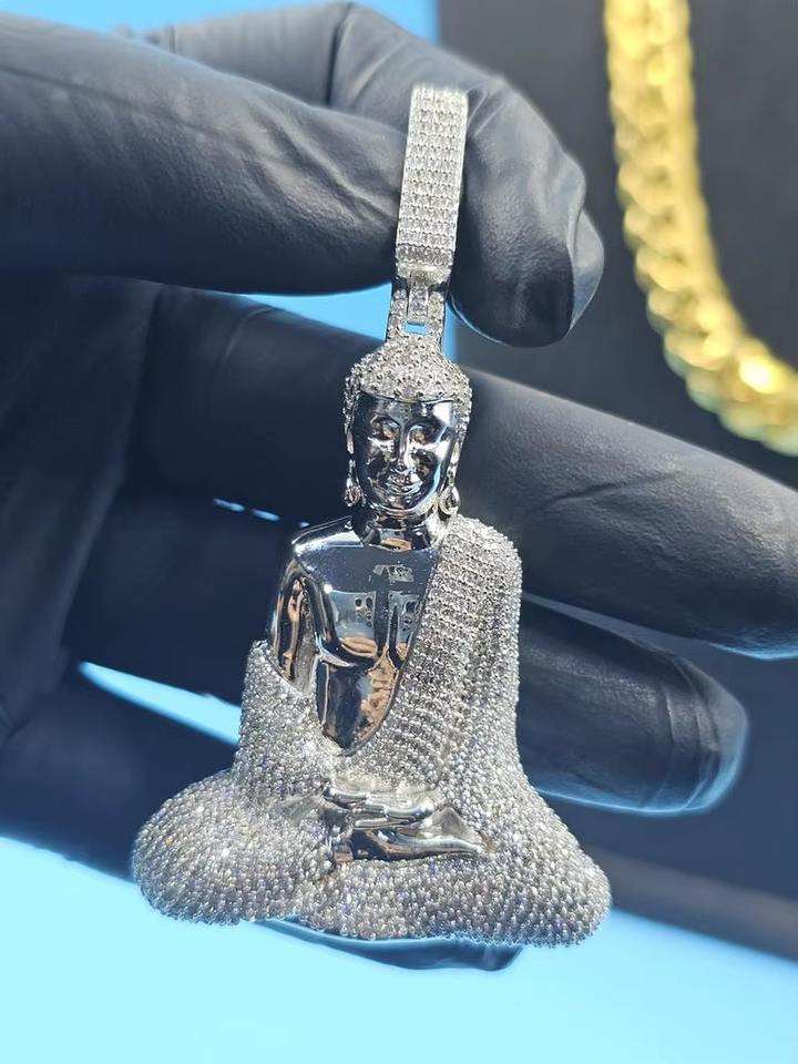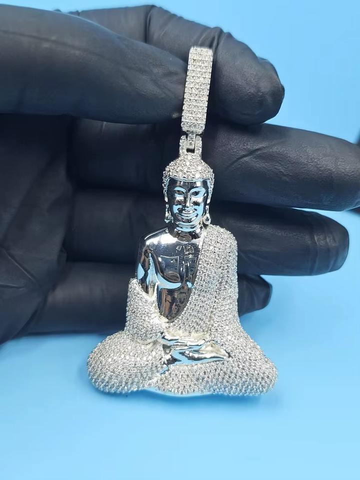 Gorgeous Crystal Buddha Religious Charm Iced Pendant Round Cut Moissanite Diamond 925 Silver Fine Jewelry Pendants Charms