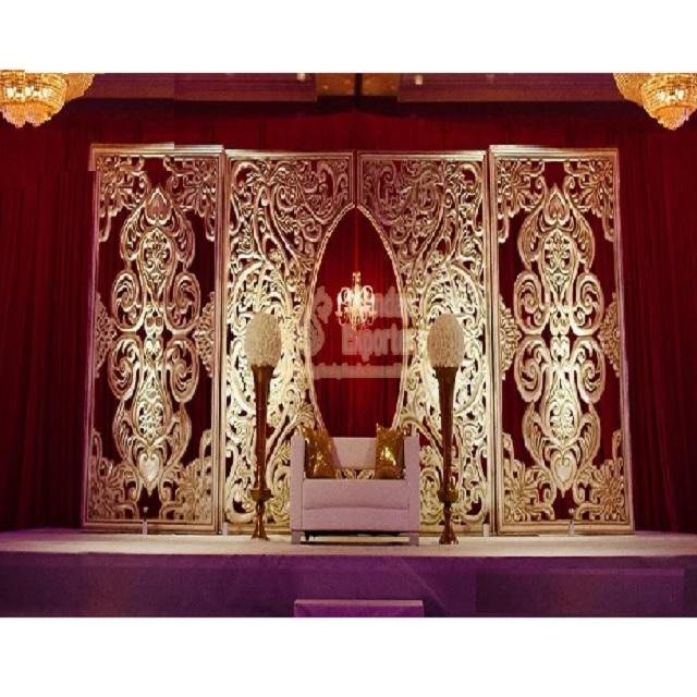 Gorgeous Golden Carved Floral Wedding Backdrop Frames for Indian-Themed Events and Parties Reception StageBackdrop Setup
