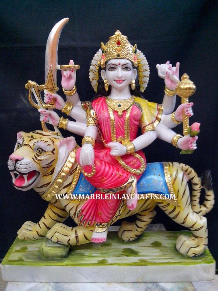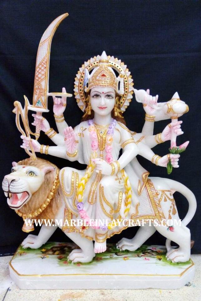 Gorgeous Handmade White Makrana Marble White Goddess Durga Maa Sitting On Lion Statue For Home Office Living Room And Temple