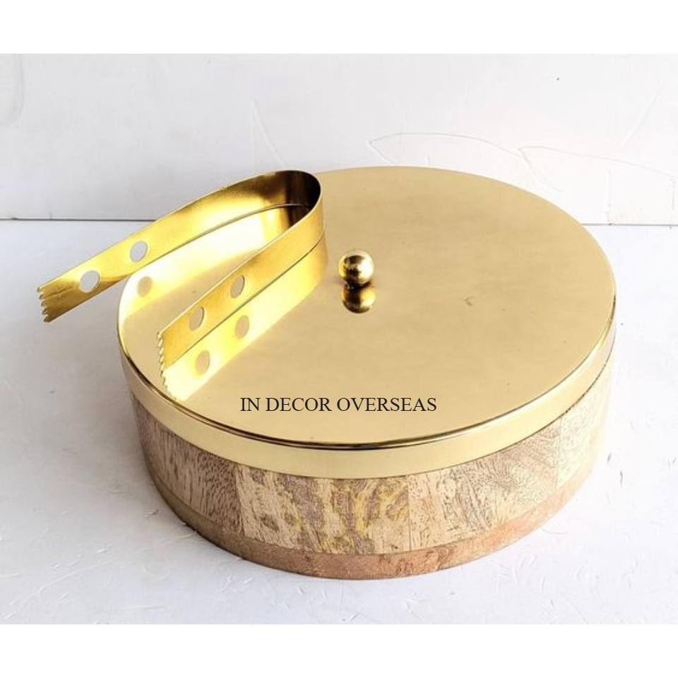 Gorgeous Look Flowers Designer Top Lid And Tong For Round Shape Best Quality Wooden Chapati Food Warmer Casserole From India