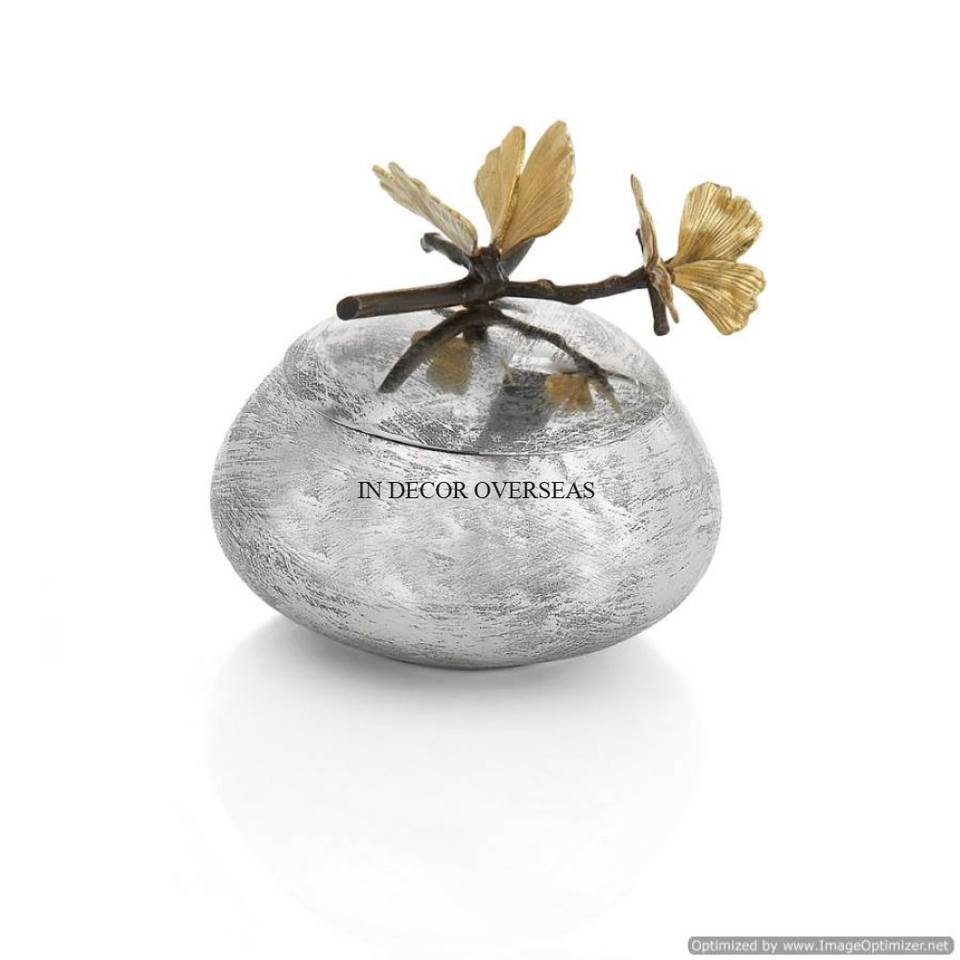 Gorgeous Look Silver Shiny Polished Prime Quality Metal Round Food Serving And Table Decor Bowl With Butterfly Designer Top Lid