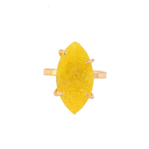 Gorgeous Looking Natural Yellow Sugar Druzy Gold Plated Adjustable Ring Classy Marquise Shape Prong Setting Open Adjustable Ring